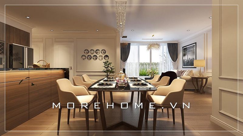Mẫu bàn ăn 6 ghế hiện đại cho phòng ăn chung cư