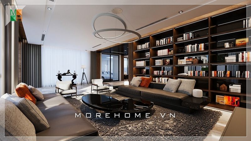Mẫu thiết kế nội thất phòng khách đẹp với tông màu xám chủ đạo được yêu thích tại MoreHome