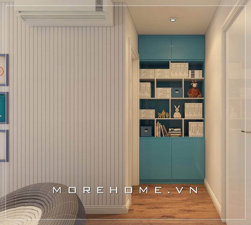 Kệ sách gỗ công nghiệp phòng ngủ được thiết kế âm tường hiện đại, đơn giản
