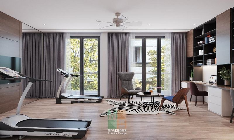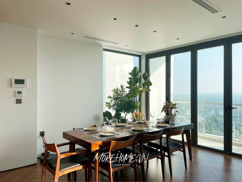 Không gian phòng được trang bị cửa kính có bề mặt rộng rãi, cho phép ánh sáng không khí tự nhiên vào trong phòng, tạo ra một không gian thoáng đãng.