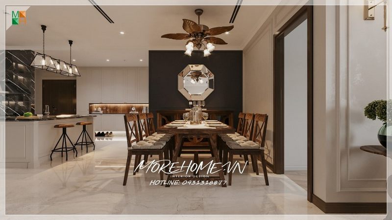 Bộ bàn 6 ghế gỗ óc chó sang trọng hiện đại giúp cho phòng ăn căn hộ trở nên ấn tượng hơn.